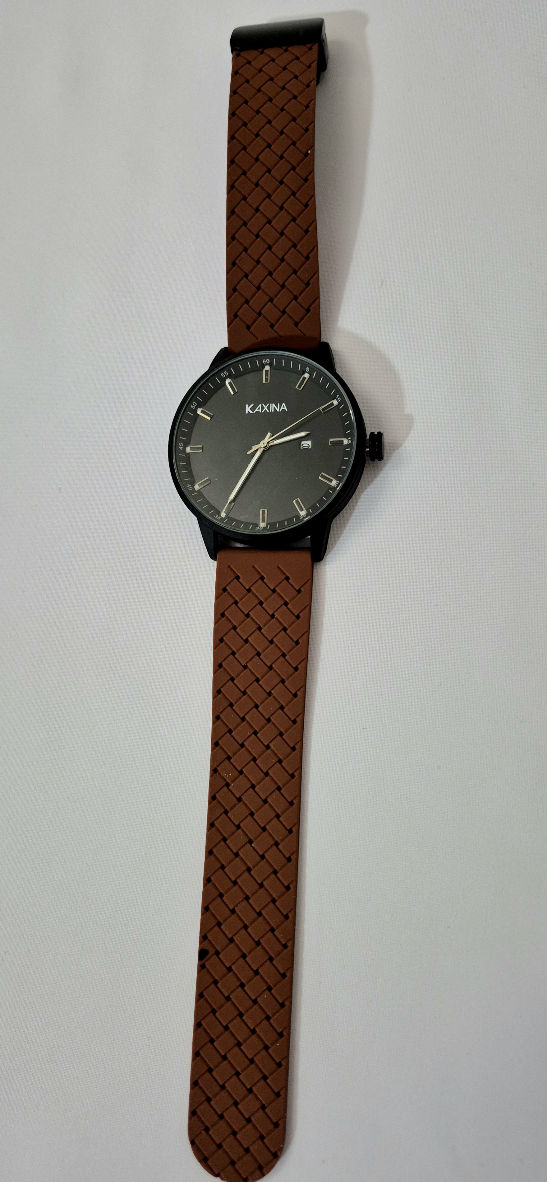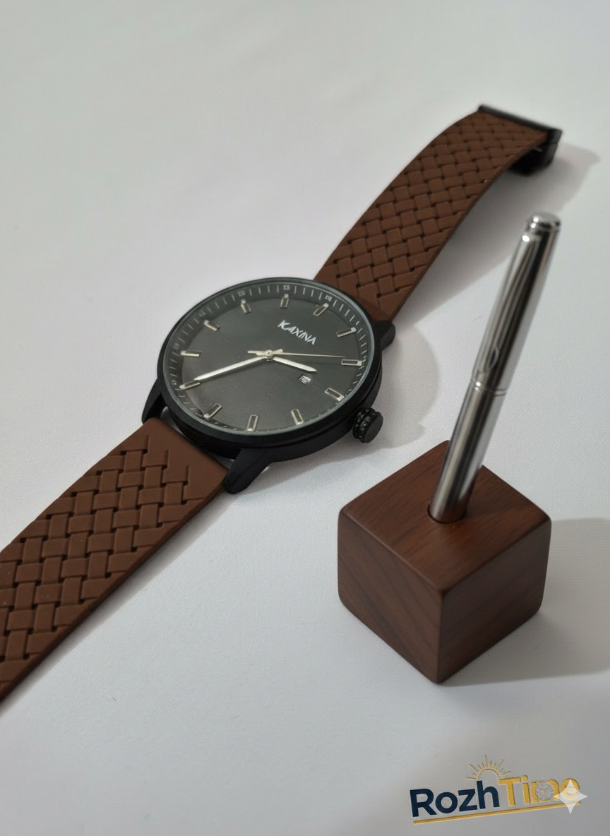 ساعت KAXINA با طراحی ساده و مدرن، انتخابی مناسب برای استفاده روزمره و استایل رسمی–کژوال است. صفحه مشکی مات با نشانگرهای ظریف فلزی، خوانایی بالا و ظاهر لوکس را همزمان ارائه میدهد. بند قهوهای بافتدار، علاوه بر زیبایی، حس راحتی و دوام خوبی روی دست ایجاد میکند.